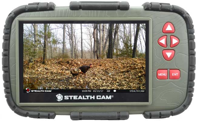 This Stealth Cam viewer is rugged, portable, and easy to use. Once you have inserted the 4 AAA batteries, it is ready to go. Simply insert an SD card and start scrolling through the pictures or videos your trail camera has taken.